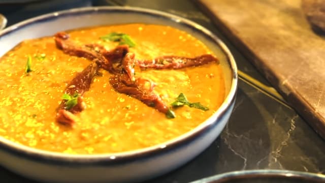 Sauce maison de crottin de chèvre frais, piment d’espelette aop, miel de fleurs de manosque