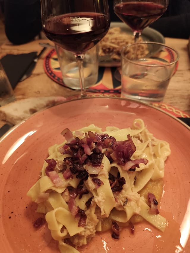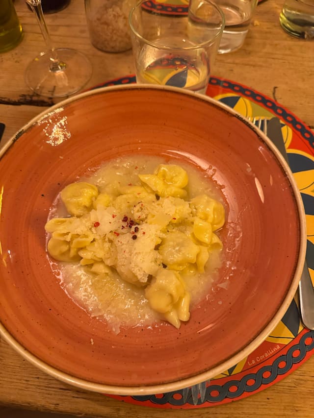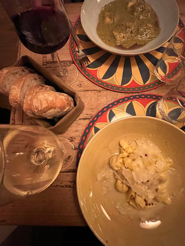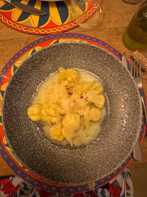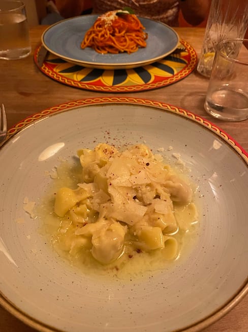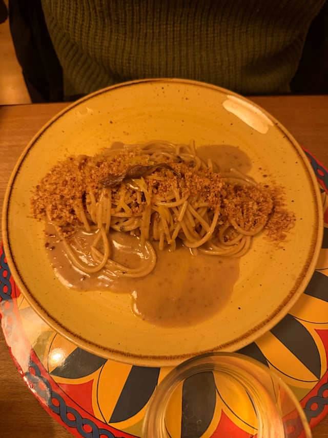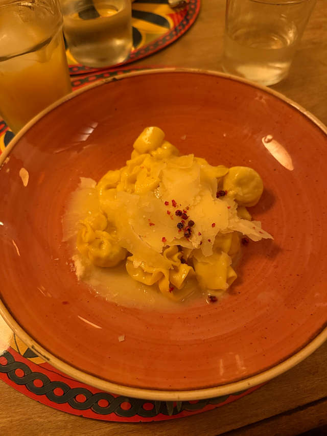 5.5/10The ambience was cute but unfortunately the food was our worst on the trip. And the entire restaurant was only Americans or tourists. The anchovy pasta was too fishy. The eggplant crumble was inedible. The pear tortelloni was ok but didn’t taste fresh. The pistachio ravioli was interesting (neither good nor bad). Service was nice. Ambience was nice. Location was central.
