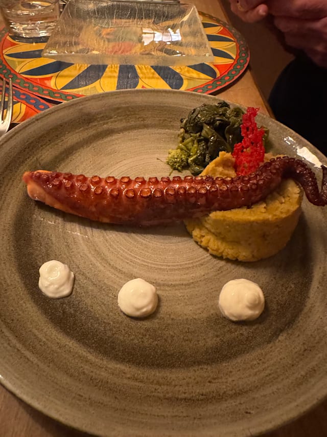 2.5/10We got fooled into going here based on ‘good’ reviews. Maybe we just went here on a bad day, but after we were seated, it took the server almost half an hour to come get our order. Actually, my son had to flag down the server to even come to our table, which should have been a sign to leave immediately. Another 20 minutes to get our appetizers. The main course came 1 hour 15 minutes after we arrived. We were just about to ask for the check. I wish we had left at that point. The powers above gave us all the hints but we thought the quality of the food would make-up for it. Wrong again. The octopus was bland. The pasta had no flavor but had too much salt. The salmon was the only thing edible. Had to drink "glasses of water' to wash out the salt taste out of our mouths. Left the place with a bad taste in our mouths, literally. Stay away from here. Plenty of great choices in Florence, but not this one. A completely waste of $125.