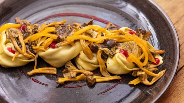 Cheese and pear "raviolino" with parmigiano reggiano cream