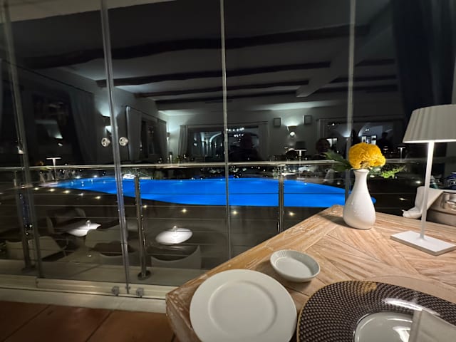 10/10An amazing evening ! Exceptional service , excellent cuisine. We couldn’t get a taxi so the hotel sent us there transport service. There was live music an amazing singer. Very romantic location with a magnificent view.