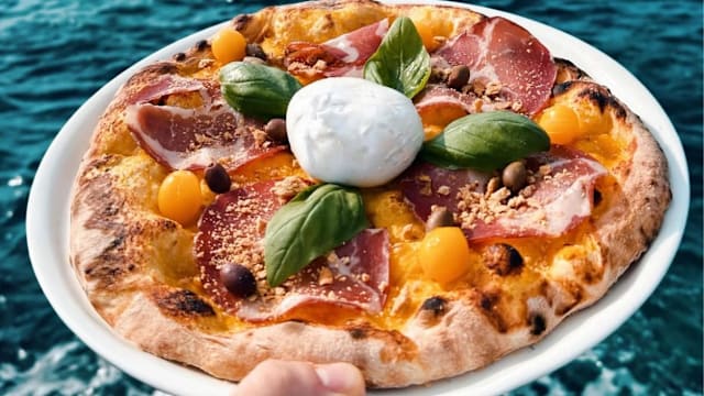 - Pomodoro san marzano DOP, fior di latte “fior di salento”, seppia, pol po, gamberi e cozze