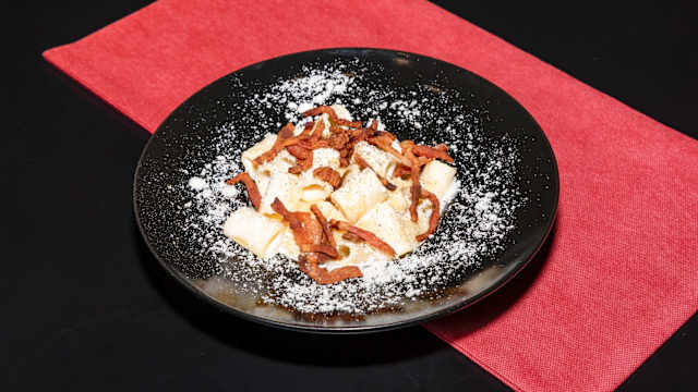 - Tonnarelli verdi con guanciale croccante