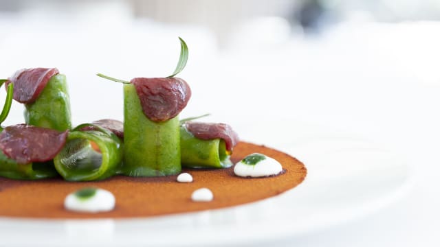 Explore the chef's selection menus with diverse dishes at fixed prices. Some are bookable via TheFork, while others are available onsite.