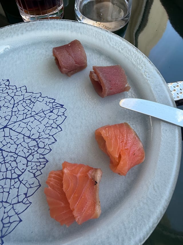 - Variazione di insalata di mare in stile nizzarda, ravanello e maionese di limoni