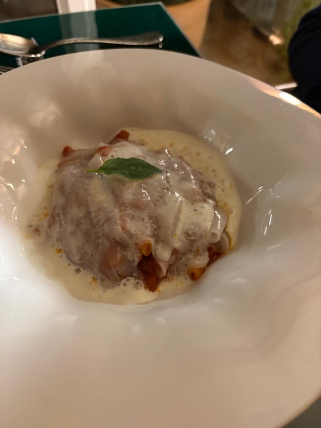 - Mezzanello lardiato alla napoletana, sifonata di pecorino bagnolese e basilico lemon