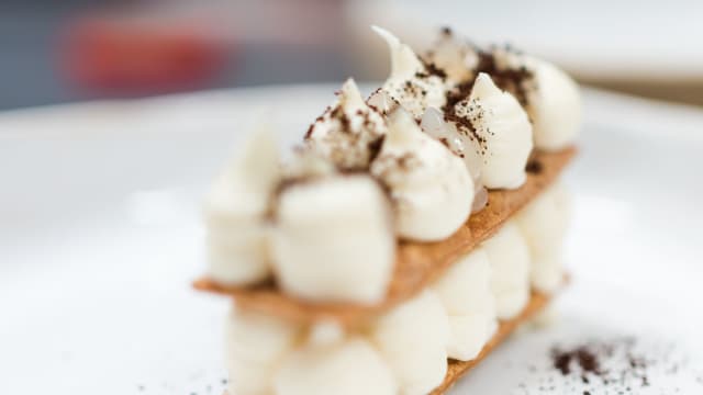 Strati croccanti di cioccolato che si alternano a morbidezza di pera e note intense di caffè.