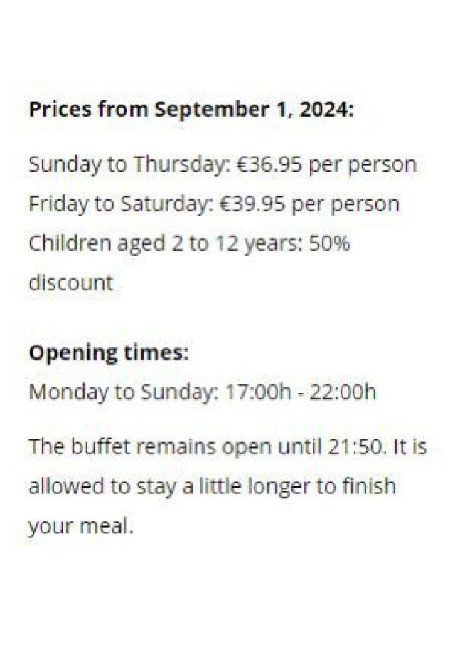 At Corendon’s All You Can Eat Restaurant, we warmly welcome you to an unforgettable culinary journey, where every day from 17:00 to 22:00, an extensive buffet of international cuisines awaits you. Our guests can indulge limitlessly in various culinary delights, including sushi, grilled dishes, veget...