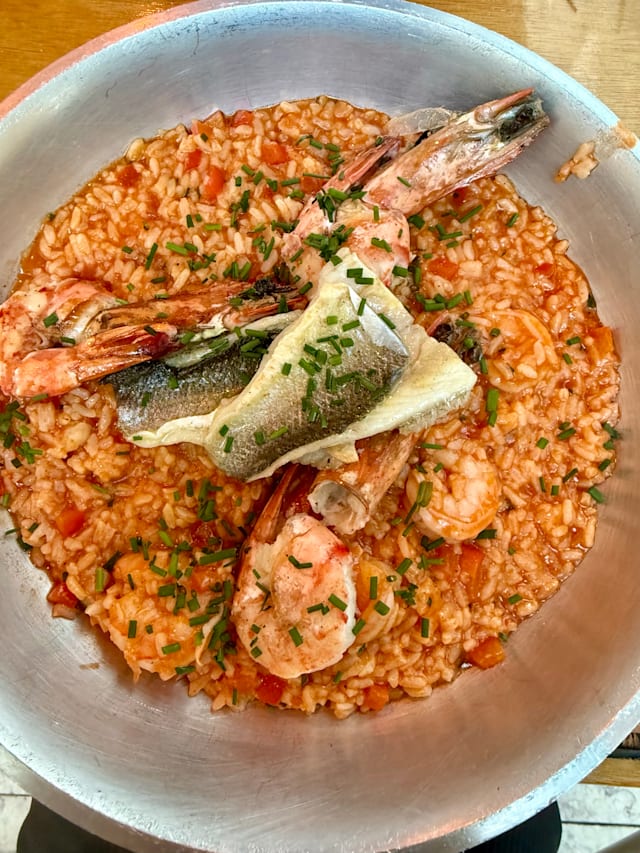 3.5/10This a complete tourist trap. They played loud top 40 music so it was not a peaceful dinner at all. The shrimp croquettes were filled with liquid and no shrimp. The sea bass was small and tough. The shrimp salad was basic but the shrimp was mushy and tasted like it came frozen. We could not leave fast enough. This is one of those restaurants with outdoor seating that lures tourists in from foot traffic. Not at all as advertised.