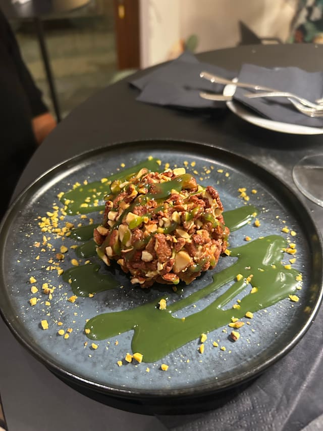 10/10+2What a space! Apparently a deconsecrated church! Amazing. Our server was Silvio who was charming and funny. Between has and our limited Italian we navigated our food choices. Food is amazing, tasty and bit quirky, fantastic presentation. We went for sharing several dishes and then two amazing desserts. Go - you won’t be disappointed!
