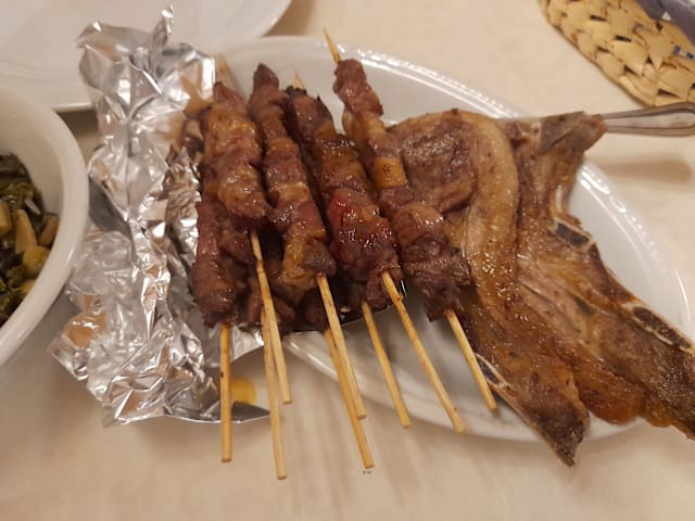 Bis di primi (cappellacci di ricotta con ragù di agnello, risotto zucca e funghi)