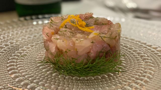 Tartara di tonno con battuta di capperi e basilico,pomodorino e puntarelle di maionese ai capperi