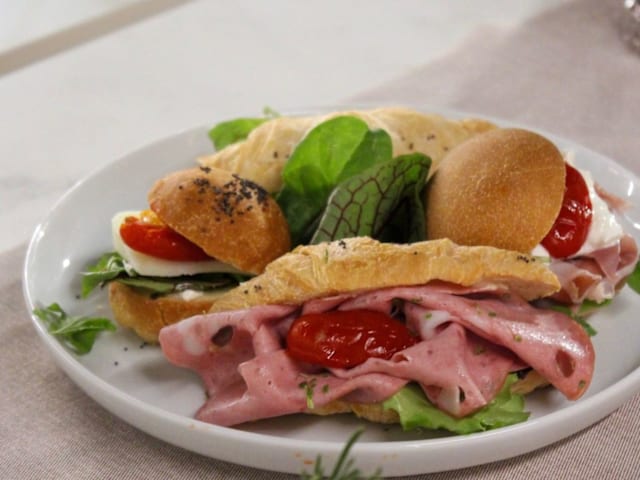 -Cornetto salato con salmone affumicato, caprino aromatizzato alla menta, e pomodorini confit - Cornetto salato con mortadella IGP al pistacchio e delicata emulsione di limone - Paninetto “cunzatu” con tuma, pomodoro “stricasale” e olio EVO - Paninetto con prosciutto S. Daniele e burrata