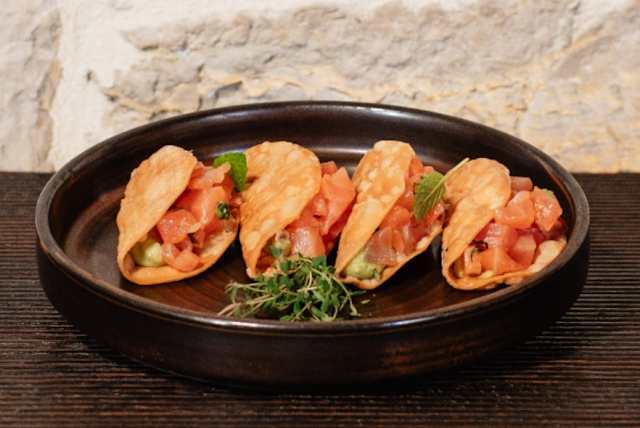 - Tacos di salmone marinato e guacamole (3 pezzi)