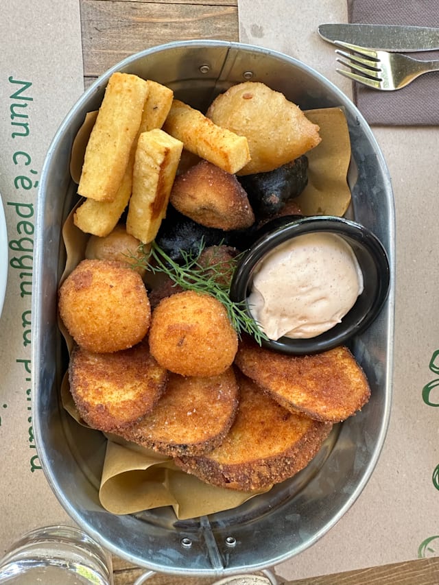 Accompagnato da stuzzichini prodotto con vino etna rosso doc