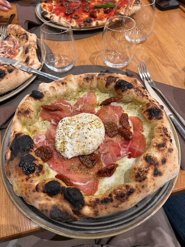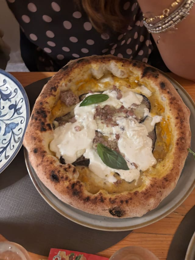 10/10Amazingly sweet service, kind host and waiter. My boyfriend sneezed and a woman in the kitchen yelled out (in English) “bless you.” We are charmed. Excellent pizza and phenomenal dough. They are happy to give you recommendations if you, like me, see so many beautiful pizzas on the menu and can’t decide. From starters to dessert and digestif, molto bene!