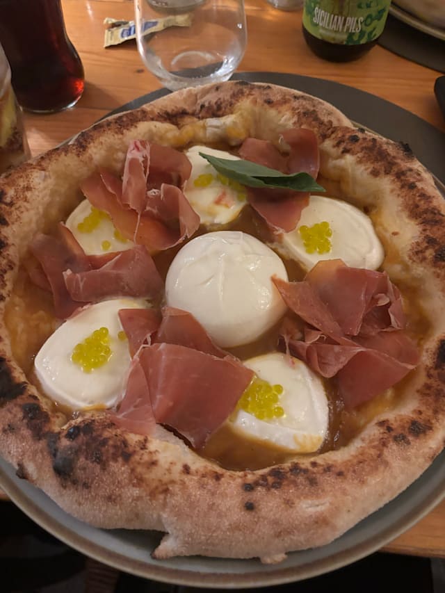 10/10Amazingly sweet service, kind host and waiter. My boyfriend sneezed and a woman in the kitchen yelled out (in English) “bless you.” We are charmed. Excellent pizza and phenomenal dough. They are happy to give you recommendations if you, like me, see so many beautiful pizzas on the menu and can’t decide. From starters to dessert and digestif, molto bene!
