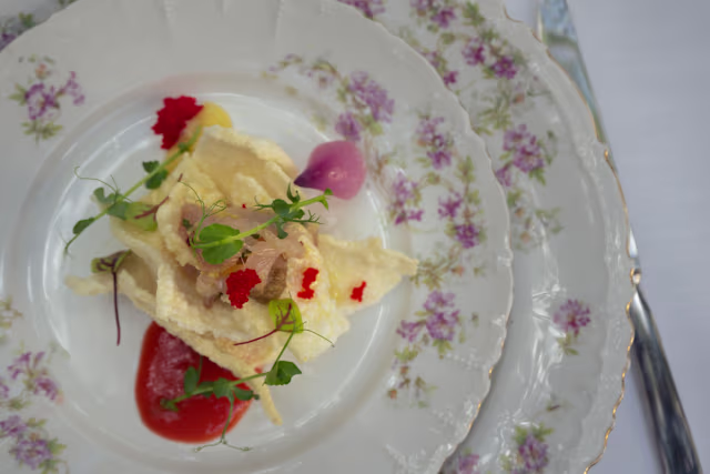 - Carpaccio di manzo con caponatina di carciofi, petali di cipolla rossa e frolla salata