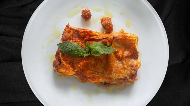 Lasagne met courgettes, caciocavallo silano en basilicumpesto