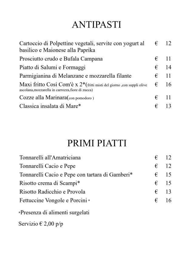 ACCOGLIENZA - Nella zona nord di Roma, sorge il Ristorante Così Com'è. Un ambiente cordiale ed accogliente, dove si respira una calda atmosfera familiare. Lo staff accoglie sempre i clienti con professionalità e con il sorriso, per far trascorrere loro una serata indimenticabile. IL MENÙ - La cu...
