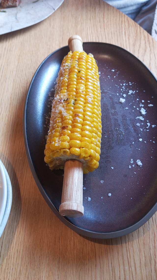 - Steak are served with complimentary grilled vegetables, sweet potato fries, barbeque sauce und sour cream