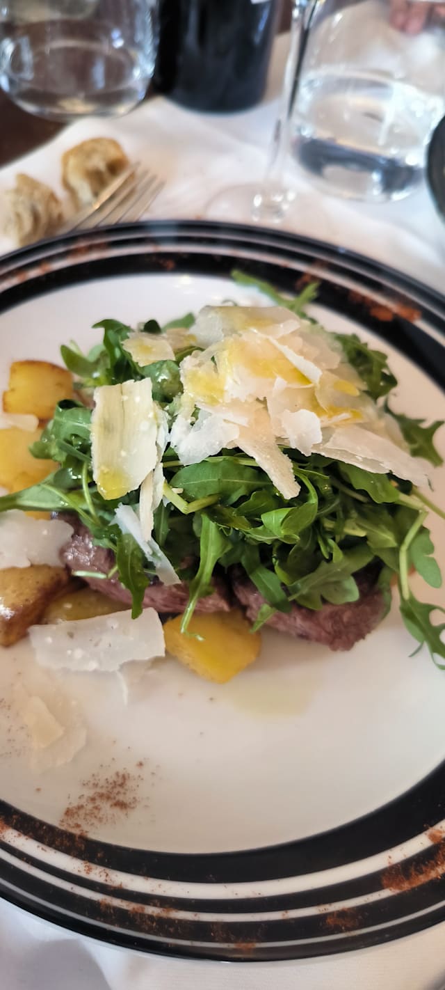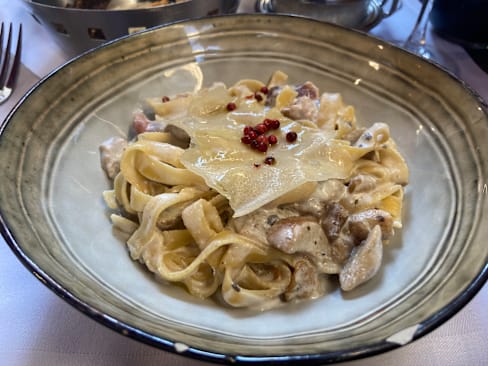 8.5/10Cute restau close to our hotel. Staff was friendly and attentive. We were invited to sit inside or outside. Melon and ham starter was fine. Tagliatelle cream sauce was heavy, but the red sauces were good, especially the three tomato sauce. .