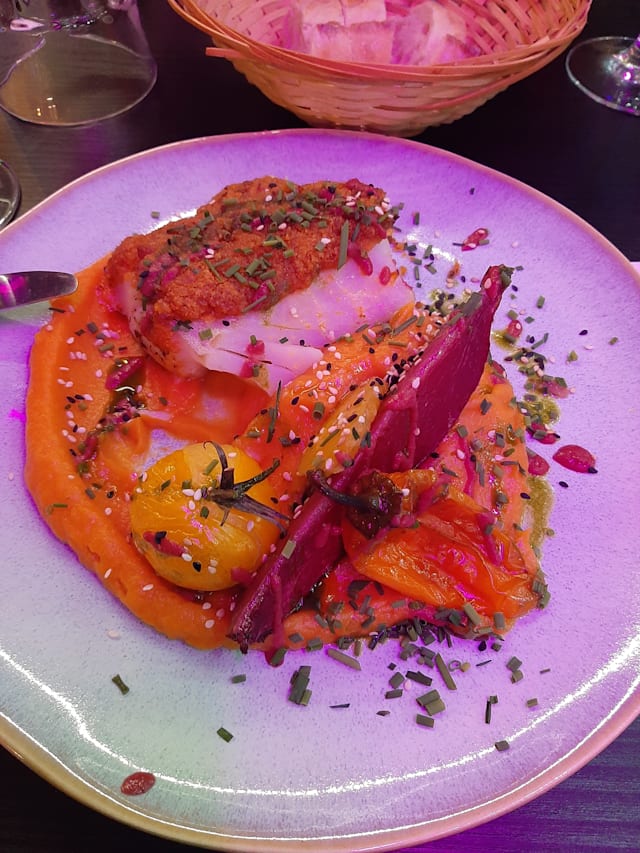 Le cabillaud, dos crumble chorizo lègumes du marché