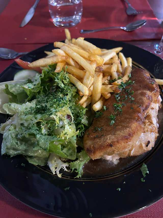 - Le cordon rose au Munster et Jambon Fumé, Sauce , Pommes Frites et salade Verte