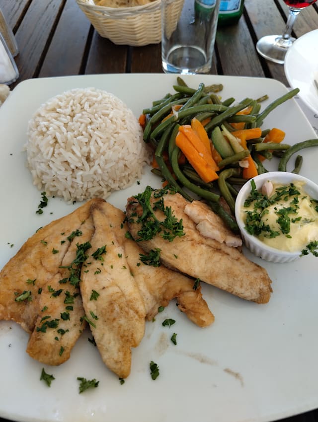 3/10Terasse is lovely and worth coming. Fishes both seabass and dorade were overcooked and fried. Seafood rissoto is great. Kids sirop greadine is not real one but tastes like medecine.