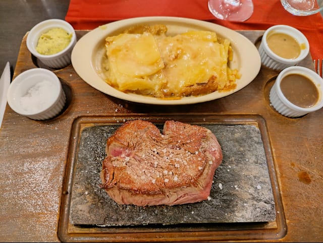 8/10Well beside the fact that the price for the beef on a slate varies by 10 CHF more than advertised on the English version 27 CHF, the French version says 37 CHF so be aware of it...beside this hick up or knowing where it comes from, the restaurant is good, nothing fancy, quality is as good and I’d say it is a nice place to go with friends as it is a convivial environment.
