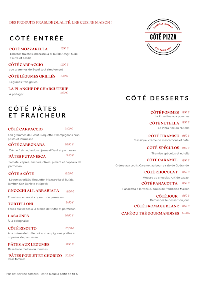 10/10Dominique was amazing! we arrived our first night in Paris and wandered around until we found her beautiful little restaurant. we had a delightful vegetarian pizza and desserts and some delicious wine and a carafe. Determined to come again we met up with a daughter of one of our friends who is living in Paris and took her out to dinner there. Again, Dominique was amazing! Delicious wine wonderful pizza and fabulous desserts. highly highly recommend