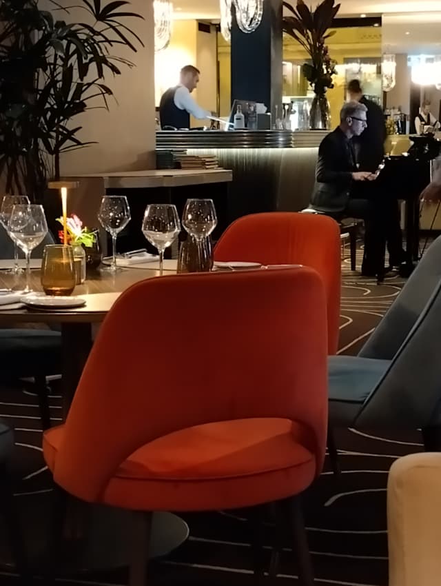 10/10Very comfortable space with friendly and quietly attentive staff. Importantly it has air conditioning during the heatwave. Located right in the center of town but in a very quiet spot attached to the very pleasant Hotel Bristol. I loved the cat paintings also…. Will definitely return.
