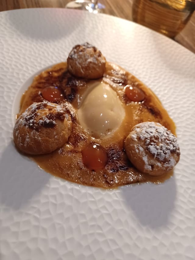 10/10Very good menu “surprise” . Good quality of the ingredients. Very nice ambiance. Dishes were well presented. The wine was excellent. I did not like my desert (profiteroles) which seemed too simple compare to the rest of the excellent menu .