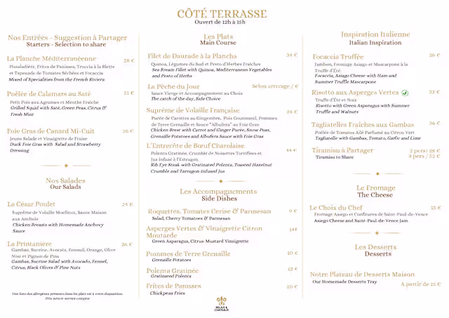 Yes, Côté Terrasse has availability on TheFork currently. Do not hesitate, reserve your table on TheFork!