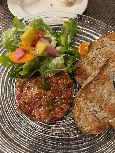 7.5/10It seemed that the chef was not there on a Sunday, because of the big difference in plating and how the dishes looked, compared to the photos of other users. The risotto was too watery because of the broth not being evaporated, the fish of the day, as well as the fish on risotto were full of bones. On the other hand, the beef tartare melts in your mouth and was purely perfect, as well as the salmon mise en bouche.