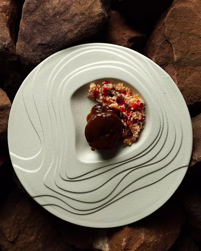 - Cuello de cordero relleno con dátiles y tabulé
