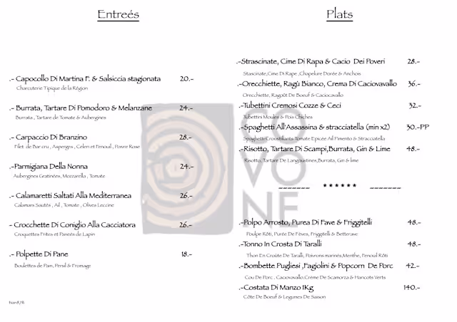 Place was very small and close to all other tables, waiter made a remark ir a face everytime we asked for something (parm cheese, olive oil, etc.) not in am agressive way but still... pizza dough wasn't warm, pasta vongole was ok but lacked flavour and vongoles thar were tiny, and paid 20 chf for 4 small bread balls as an entree. Wine was excellent thougg, w/c not too clean...
