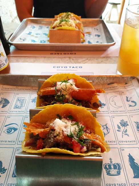 7.5/10Biased as i user to hang out at the original Coyo Taco in Miami: Good quesadillas, Mexican beer and Baja California wine and we’ll made guacamole did not make up for the fact the tacos lacked flavor and there was “burritos” on then menu. That’s Tex Mex and disappointed. Place is in a Turístic part of town and serves a good ambience, and service was great. Would come back but with lower expectations.