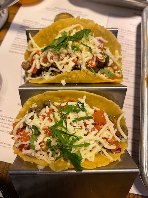 7/10I didn’t like the dough of the tacos, that is homemade. Is to heavy and it take all of the other flavors.