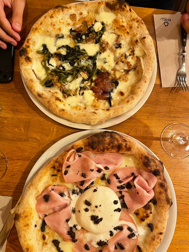 4/10I was craving a normal pizza, especially with tomato sauce, but my four cheeses didn't have it. Fair, my mistake. The service was rushed and didn't feel welcoming. The pizza's were mid, the crust was great tho. The sparkling water tasted like salt.