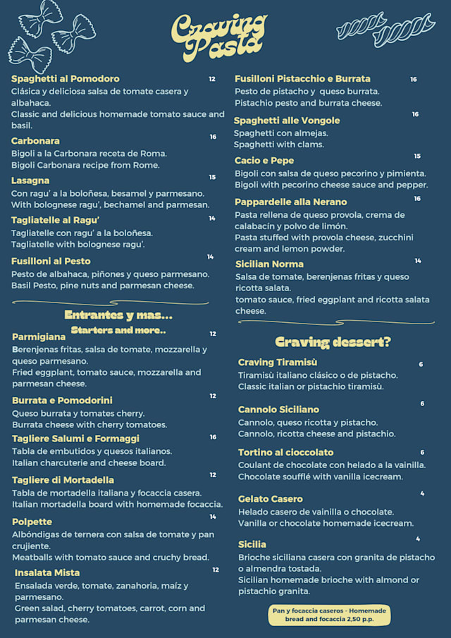 Craving PastaDear customer, the “extra items” you’re mentioning are part of our service and are clearly listed in our menu as “coperto/service cost” of 3,50 euros but you maybe didn’t read it accurately. It’s all part of the experience as in many other restaurants of this kind. We’re sorry you didn’t have the experience you wanted, probably we’re not the restaurant for you.