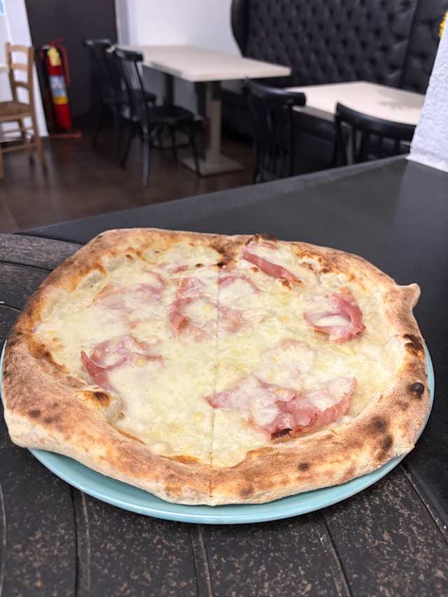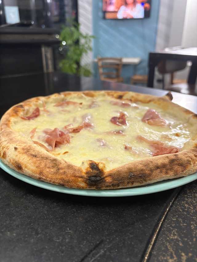 - Fiordilatte, panna, mais, prosciutto cotto, funghi champignon, basilico e olio EVO.