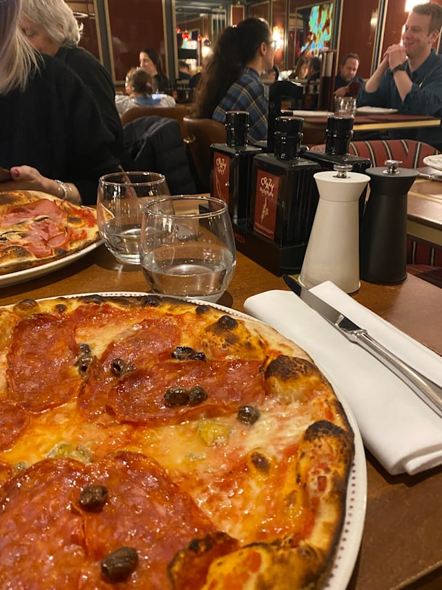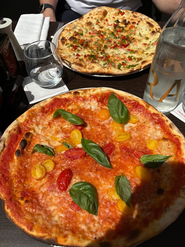 3.5/10Good pizza but the waiter forgot about us for a while. 85 for two pizzas and a dessert. Not worth the money
