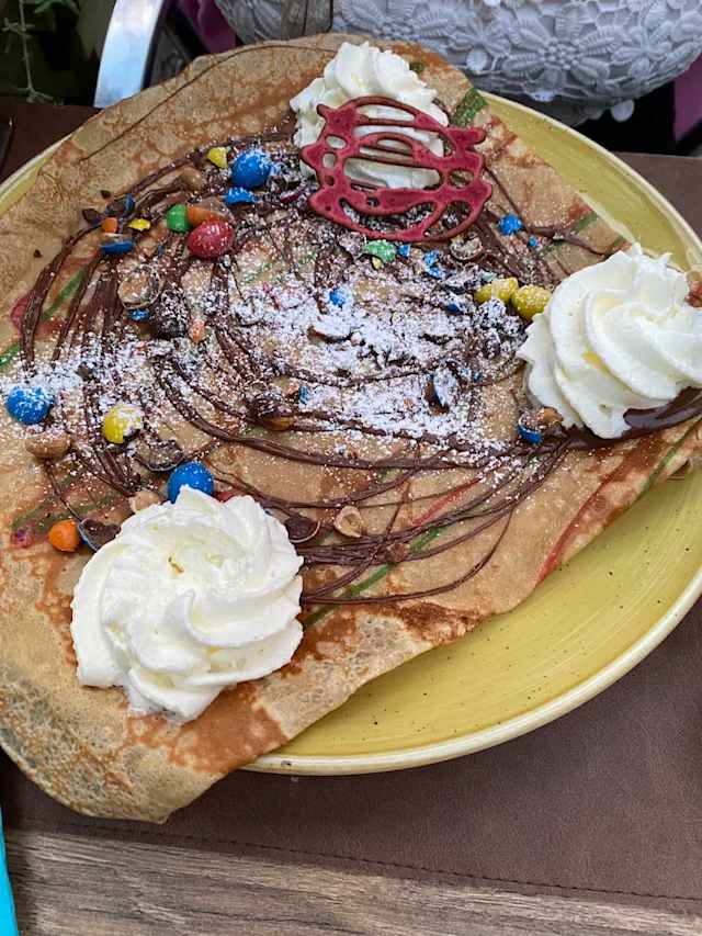 - 1 crêpe « sucre, nutella ou confiture maison » ou 1 boule de glace