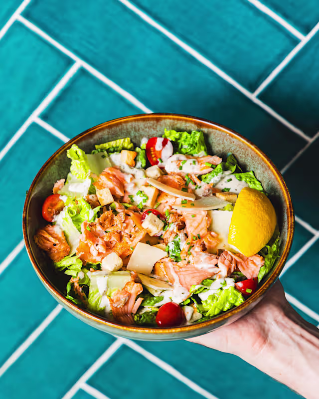 - Filet de cabillaud pané avec soin, pesto verde, quart de citron, sauce tartare, french fries dorées, salade fraîche et croquante