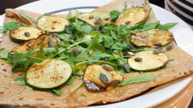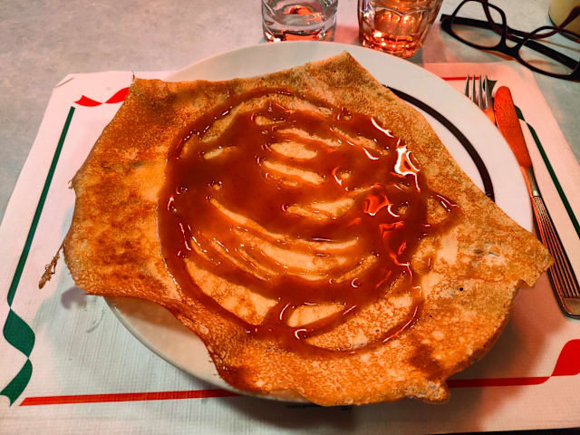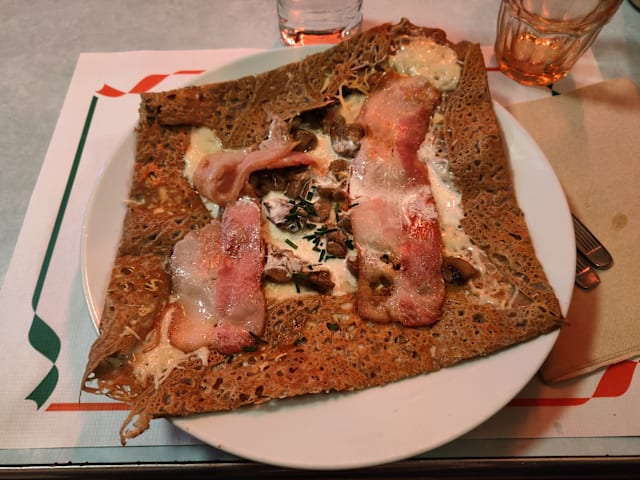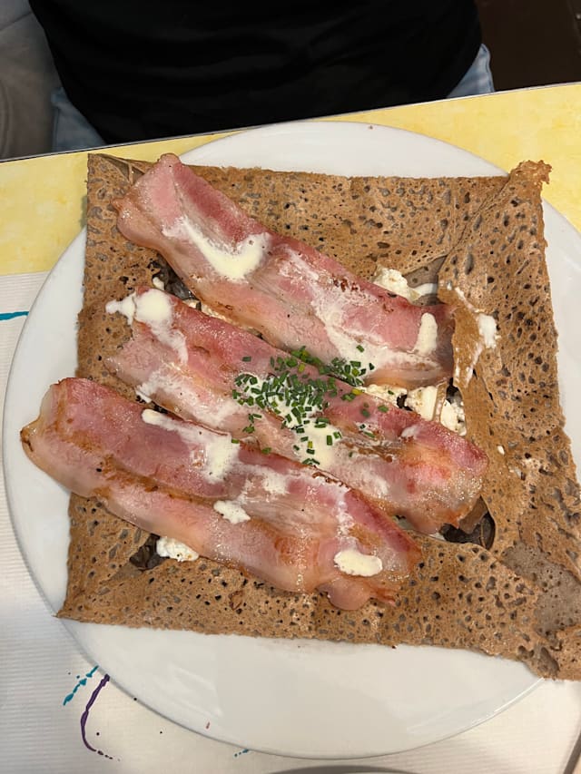 8.5/10We ordered two crepes and they are very tasty! We shared a big salad and it’s Ok. The service was a little bit slow, but very kind! I think that was because only one person is serving outside!