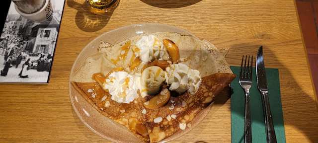 CrêperieEuropeanFrenchCrepesIce CreamSaladBachelor partyBirthdayBistroFrom marketGood for a business lunchGood for familiesLunchSeminarWith friendsLactose intoleranceLocally producedNut allergiesPeanut allergyVegan dishesVegetarian dishesAmerican ExpressChildren's menuDog-FriendlyWheelchair Accessible