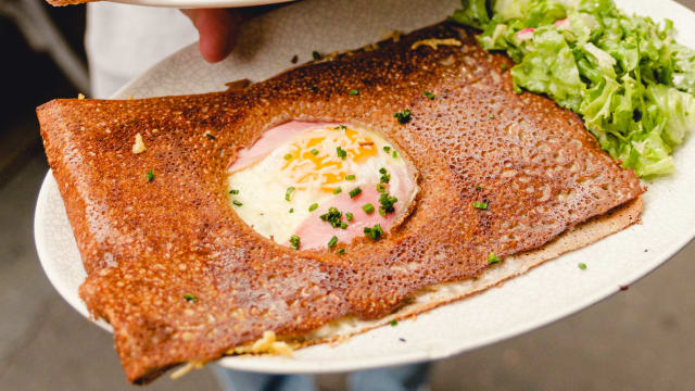 10/10We enjoyed both savory and sweet crepes. The onion comfit was delicious. Good cocktails too. Friendly service. Outdoor terrace in square was nice.
