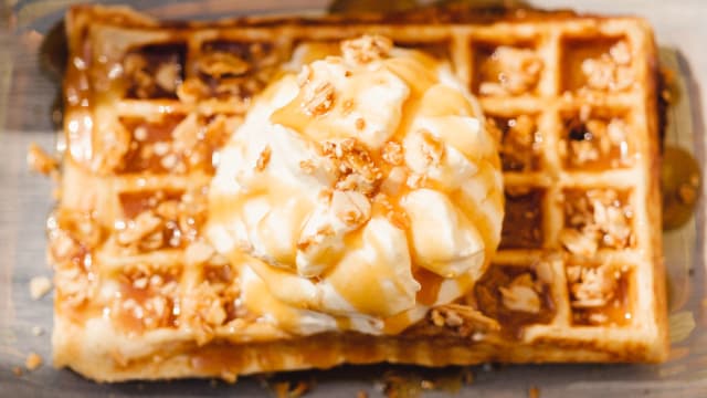 - Crème de marrons, glace artisanale à la vanille, chocolat noir, amandes caramélisées, chantilly maison
