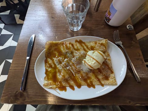 8.5/10the flavor of the Arsène galette was great, though it was a bit dry, and the Yvonne crepe was a bit tart but still good. the service was great. it's in a shopping mall so it was hard to find and, well, it's a mall 🤷🏻♀️ but they did what they could given the circumstances. it was cute:)